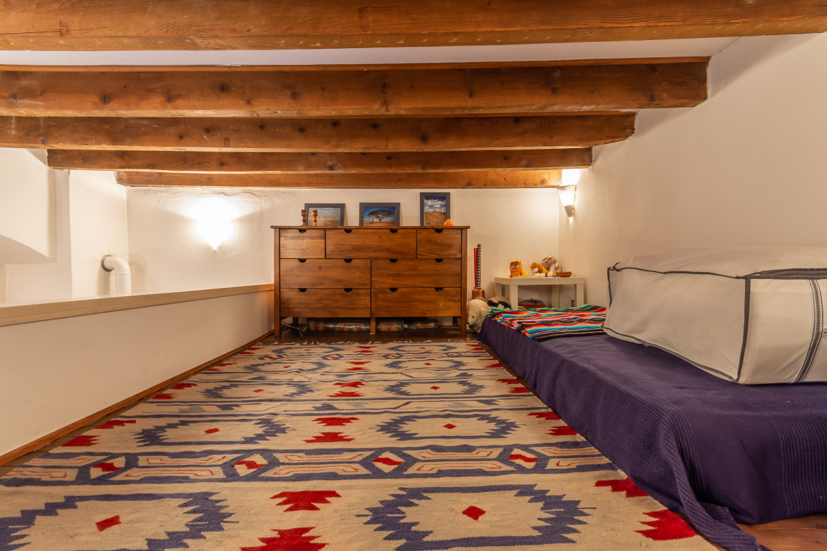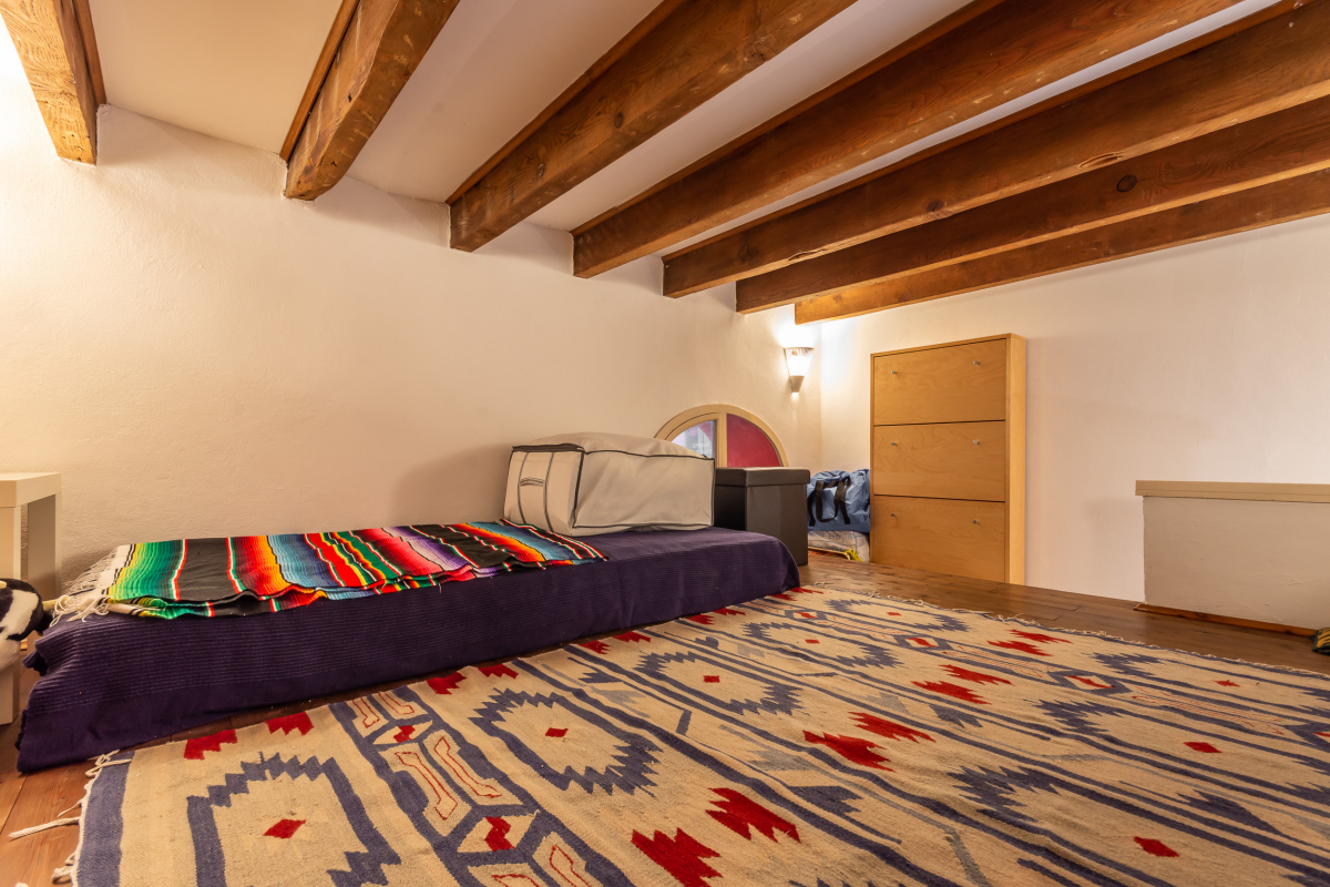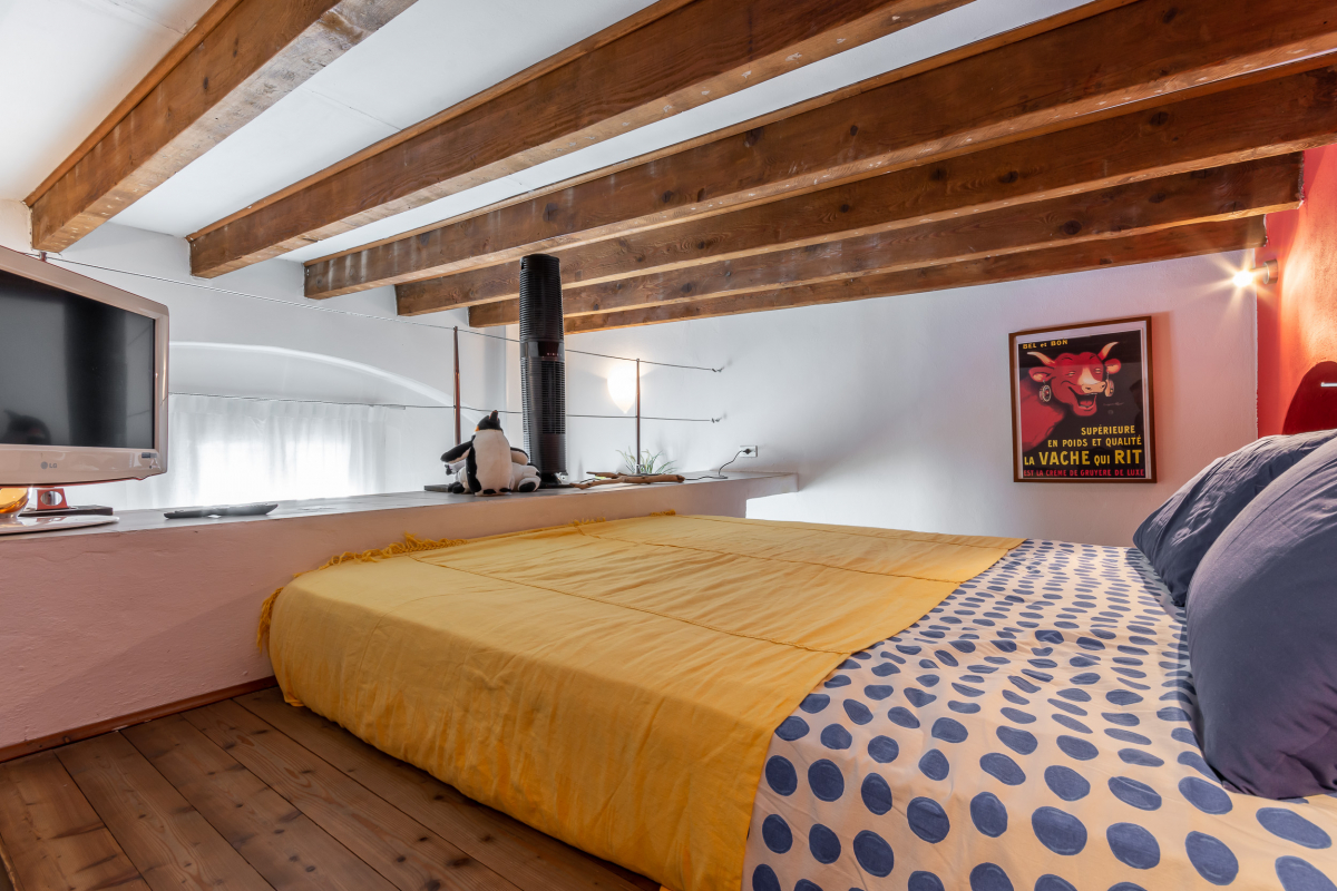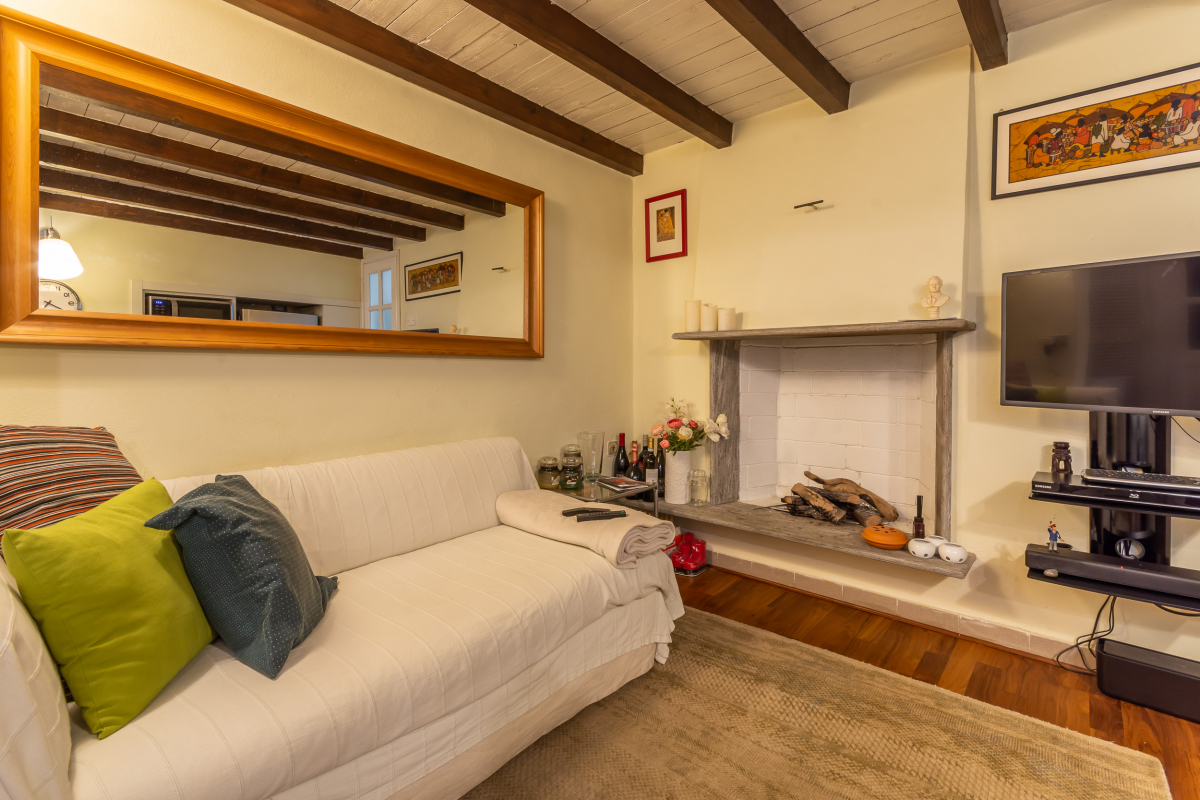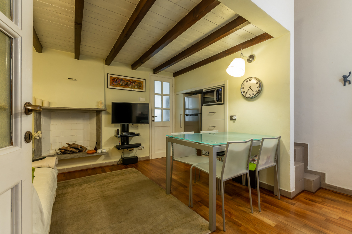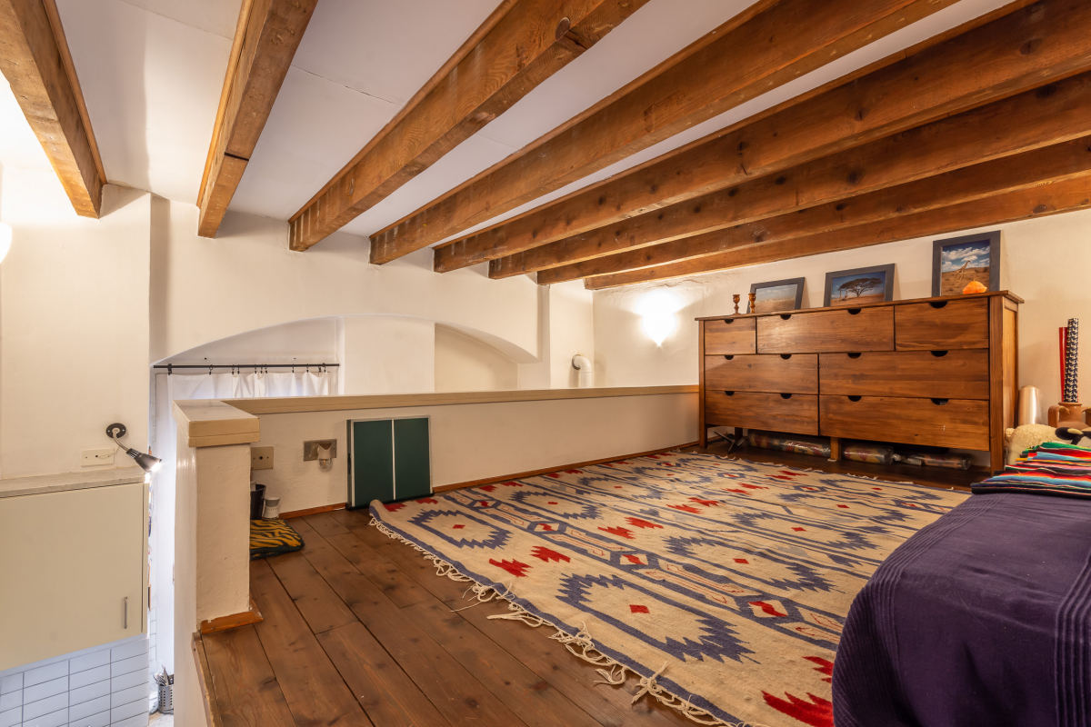All'interno dell'abitazione è presente una pavimentazione in parquet e sul soffitto sono presenti le travi in legno.