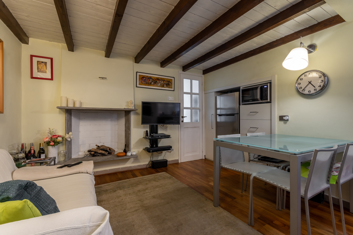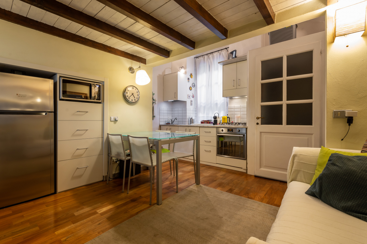 - ingresso con zona giorno e angolo cottura completo di elettrodomestici