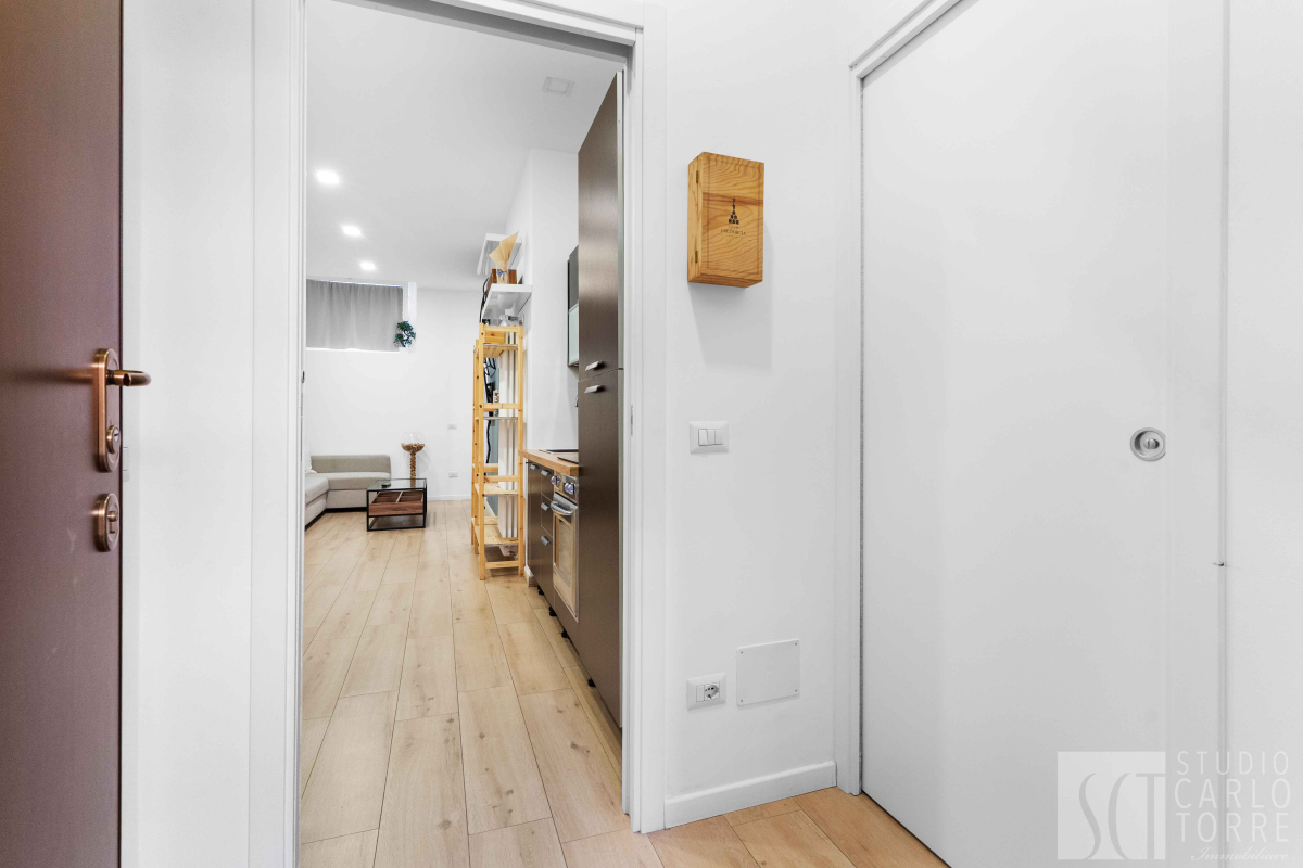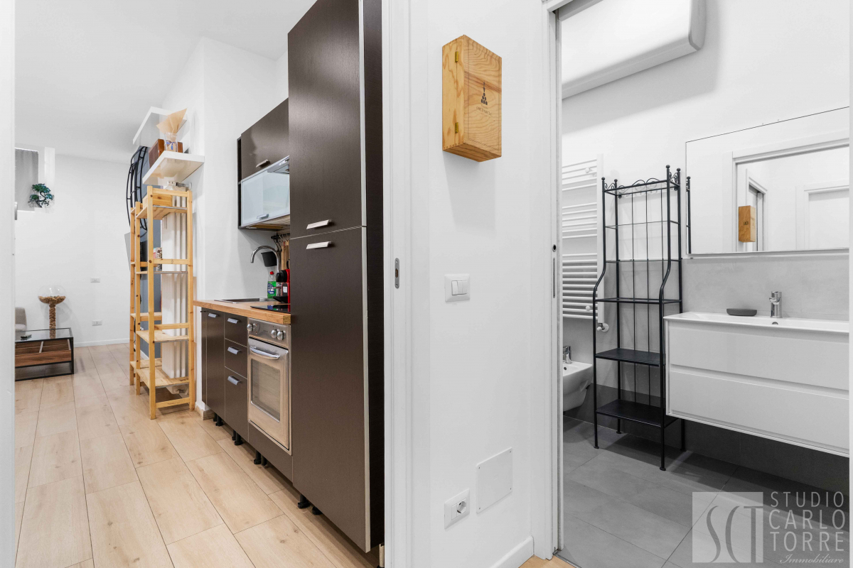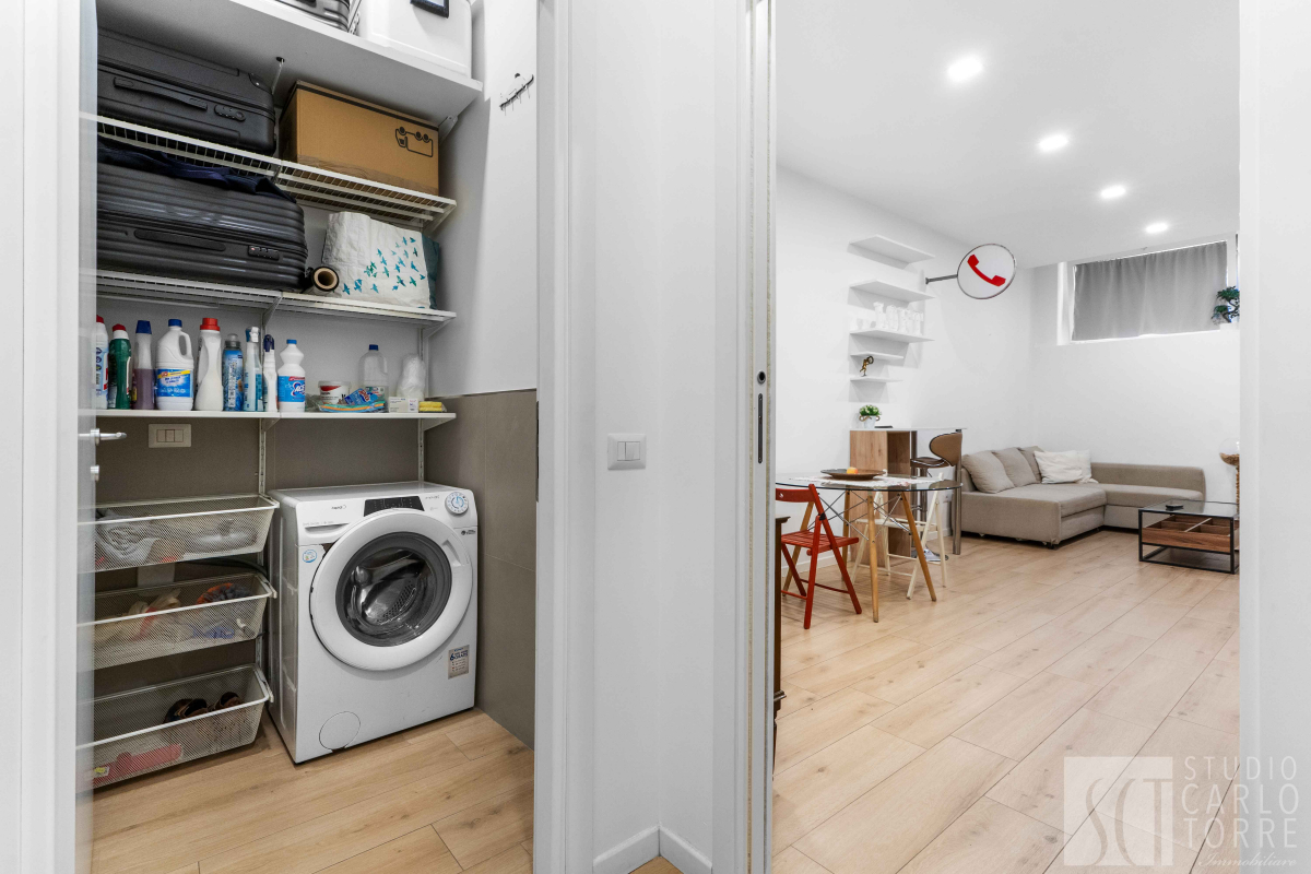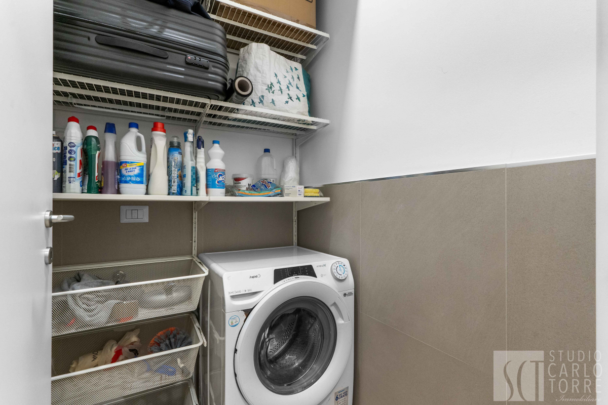 L'immobile si compone di una luminosa zona giorno con cucina a vista ideale per accogliere amici e familiari. La camera matrimoniale è dotata di una pratica cabina armadio che ottimizza lo spazio senza compromettere lo stile. Inoltre, l'appartamento include un antibagno adibito a zona lavanderia/ripostiglio e un elegante bagno completo di doccia.