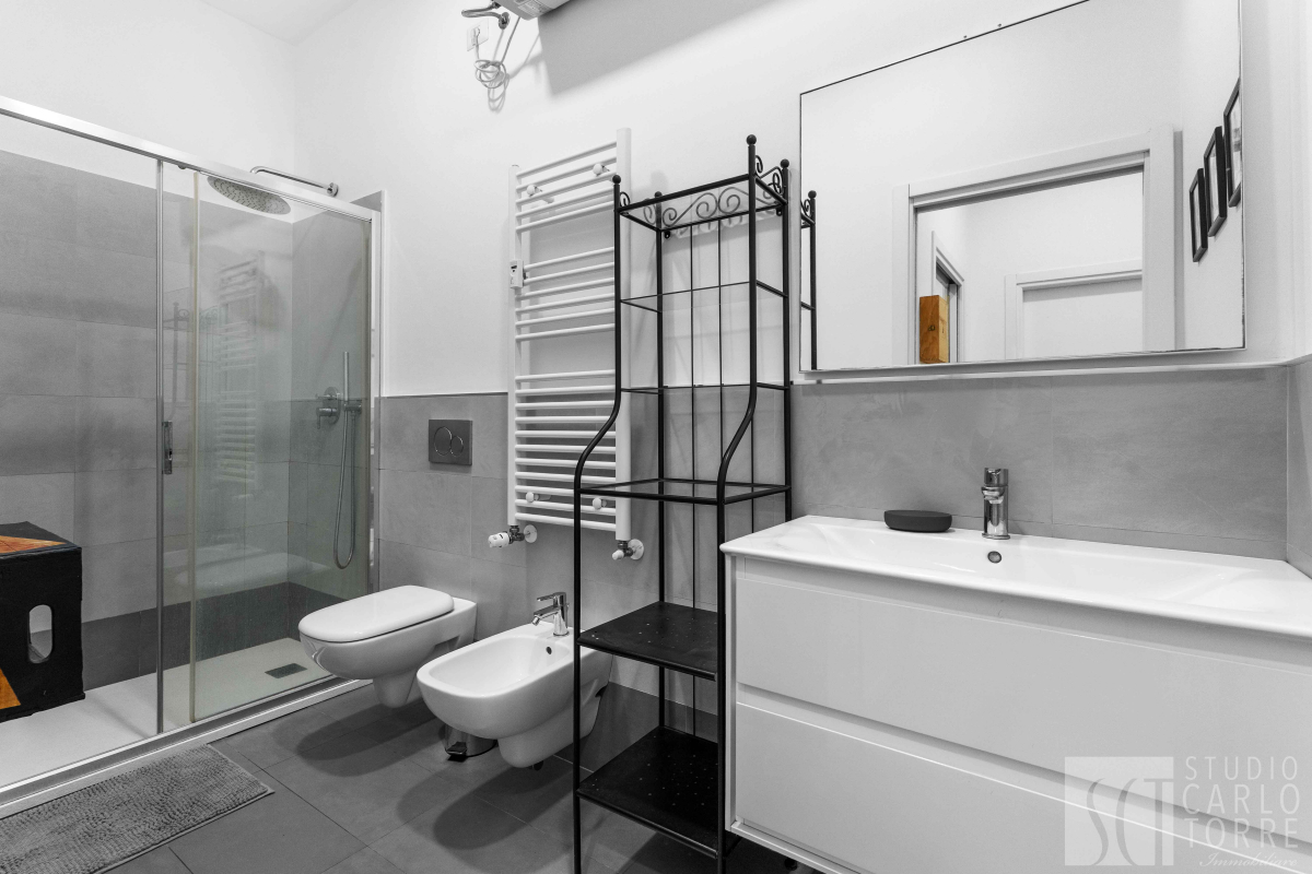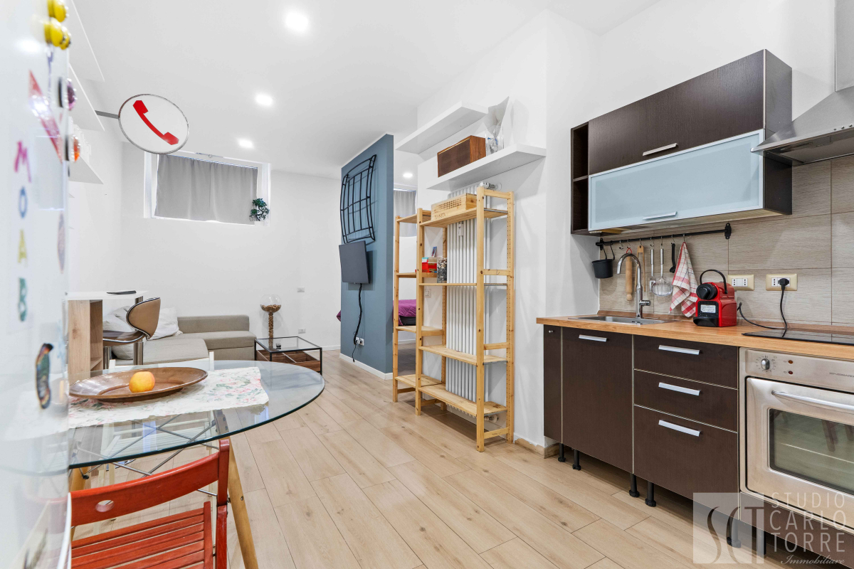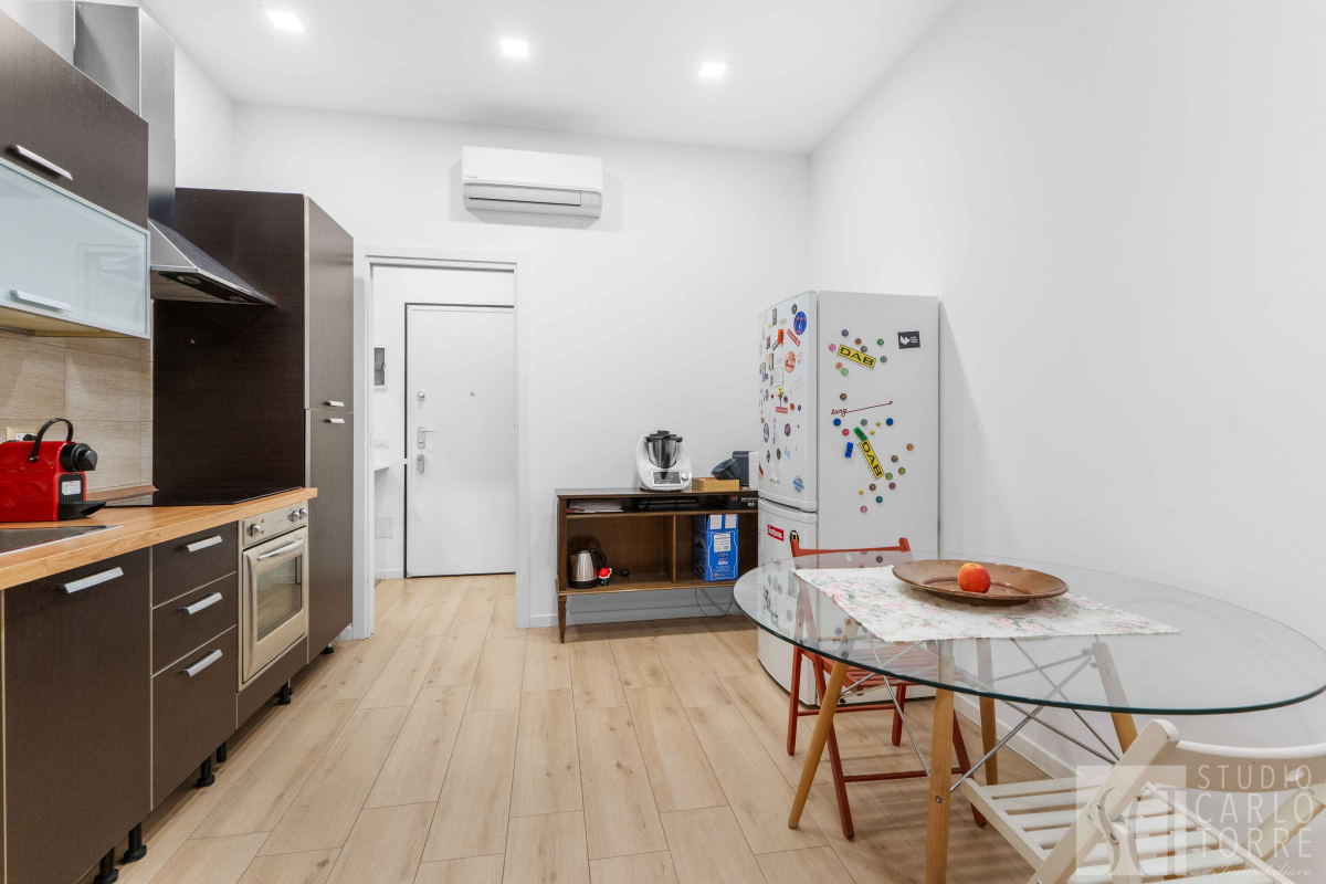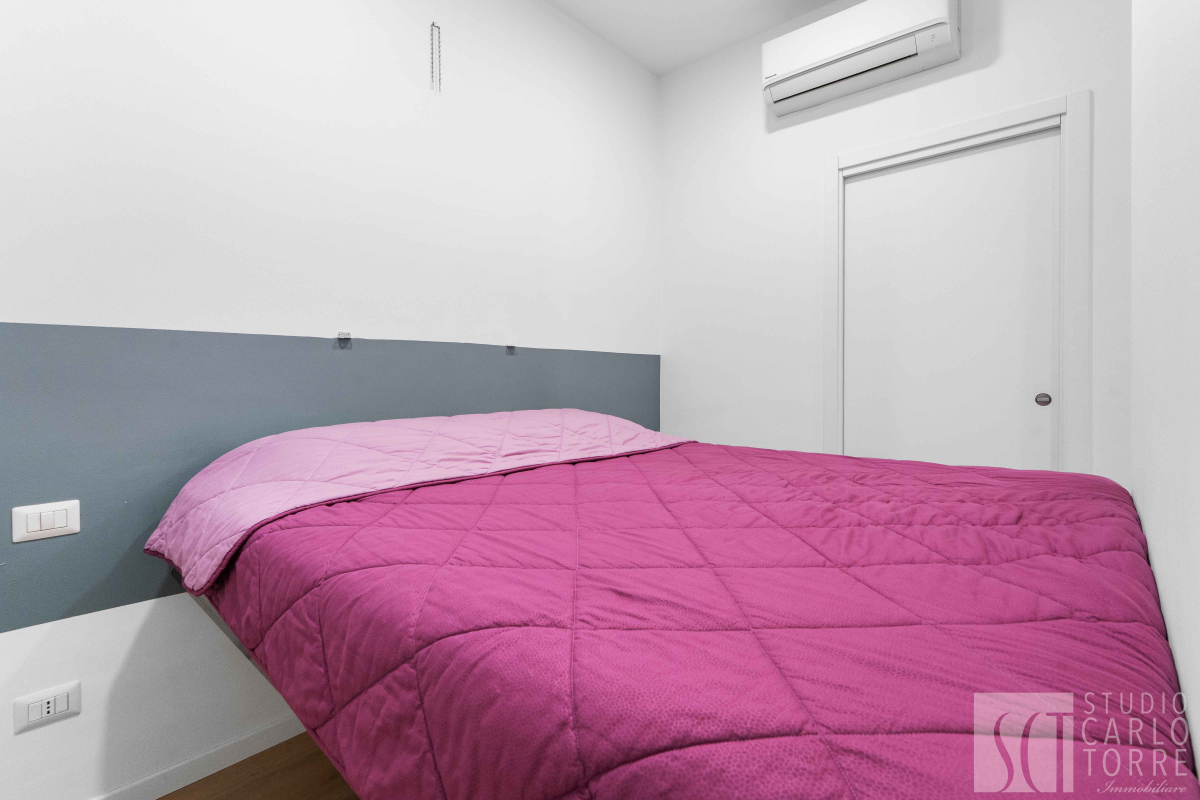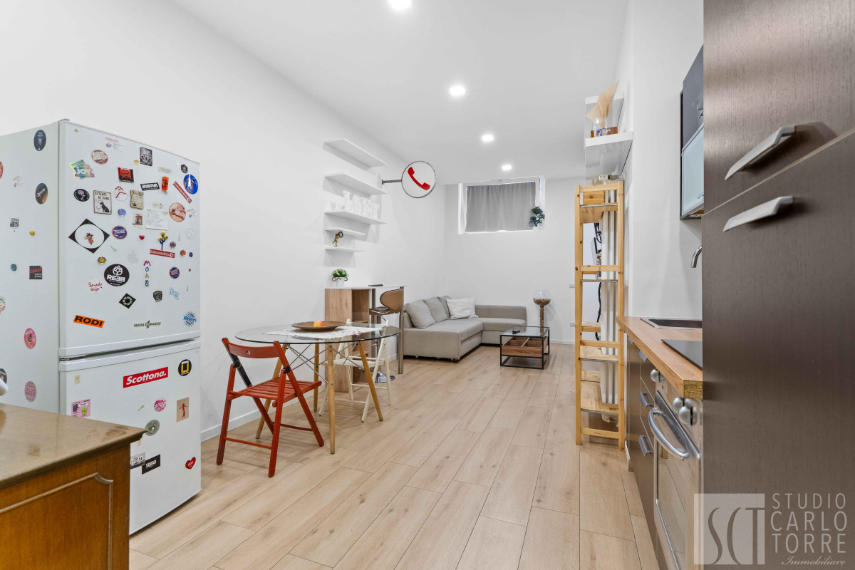 L'immobile si compone di una luminosa zona giorno con cucina a vista ideale per accogliere amici e familiari. La camera matrimoniale è dotata di una pratica cabina armadio che ottimizza lo spazio senza compromettere lo stile. Inoltre, l'appartamento include un antibagno adibito a zona lavanderia/ripostiglio e un elegante bagno completo di doccia.