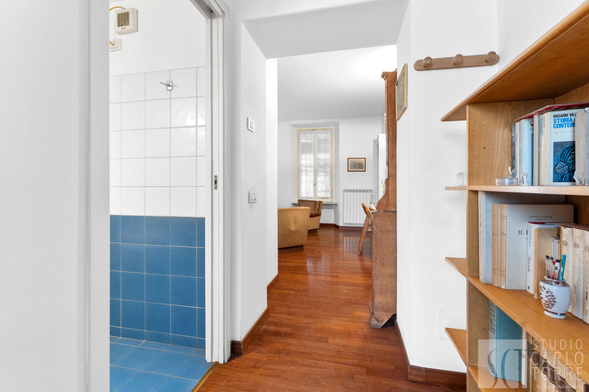 Il parquet che riveste tutta la casa, ad eccezione del bagno, conferisce calore e raffinatezza agli ambienti rendendoli ancora più invitanti.