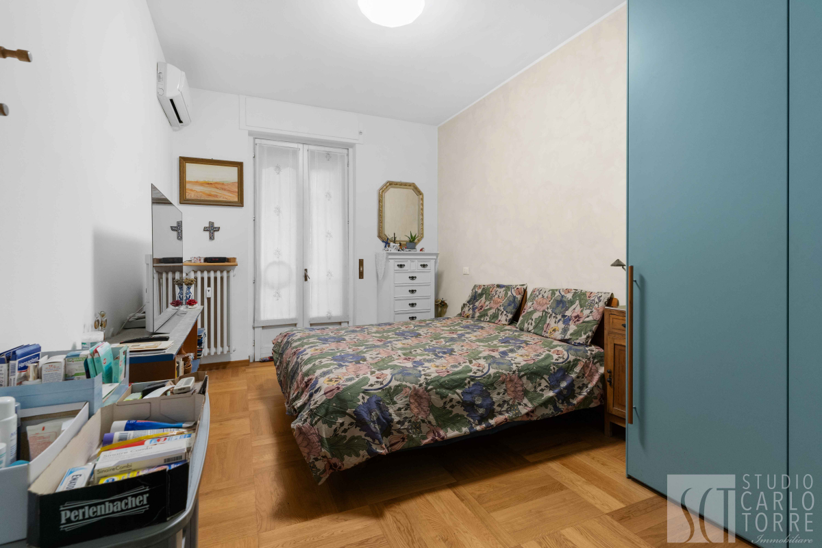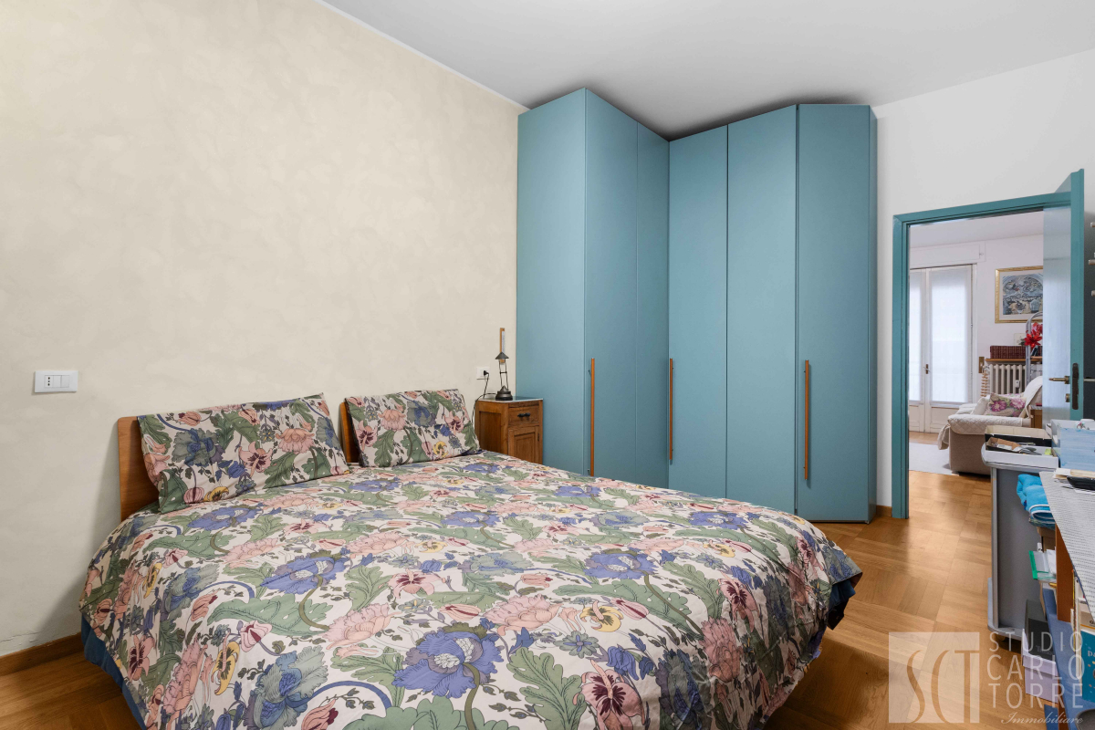 L’appartamento offre tre camere da letto spaziose: una camera matrimoniale dotata di balcone privato, ideale per momenti di relax all'aria aperta; una seconda camera matrimoniale ampia e confortevole; e una terza camera da letto anch’essa con accesso al balcone. Il bagno finestrato aggiunge ulteriore valore alla proprietà, garantendo luce naturale e ventilazione.