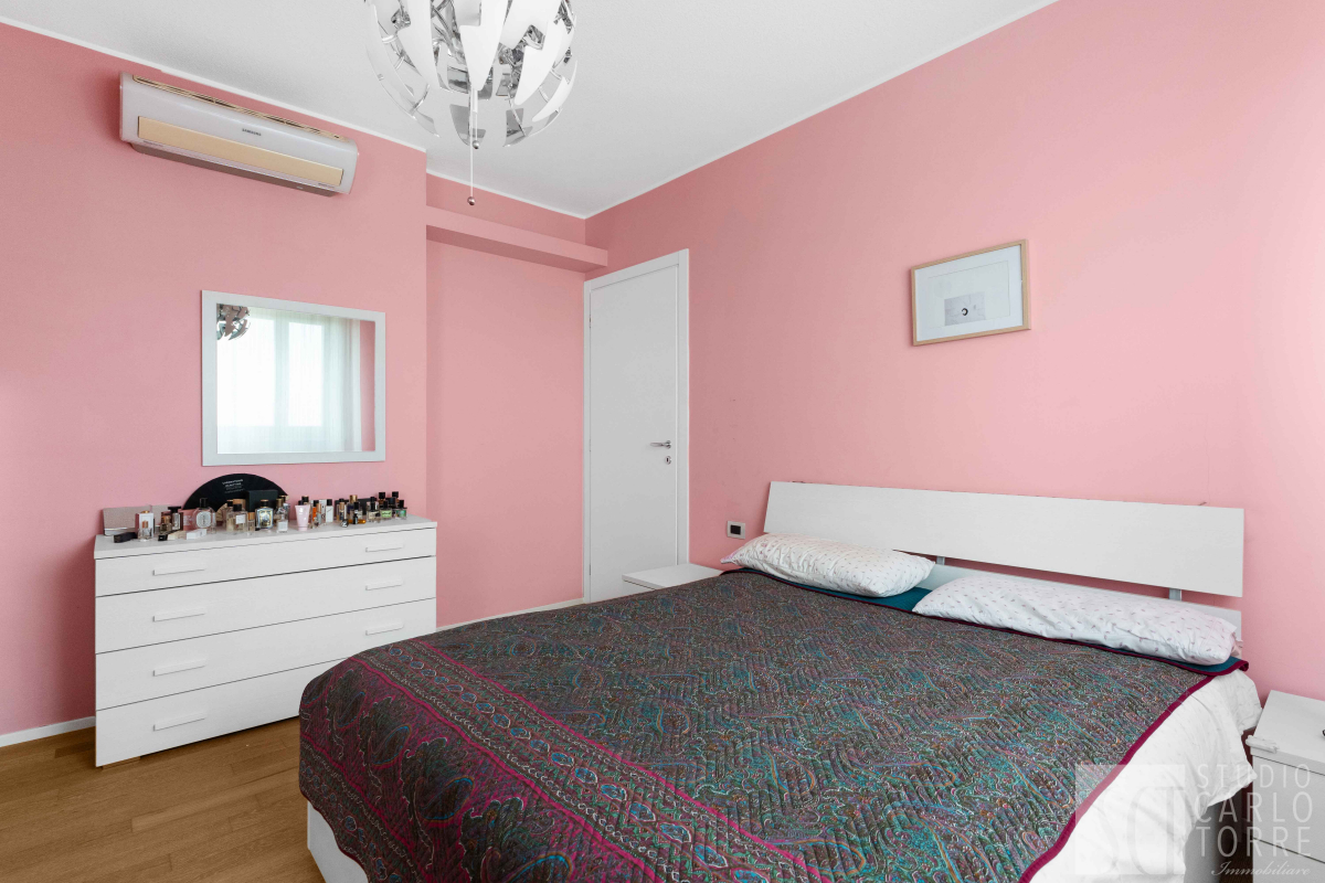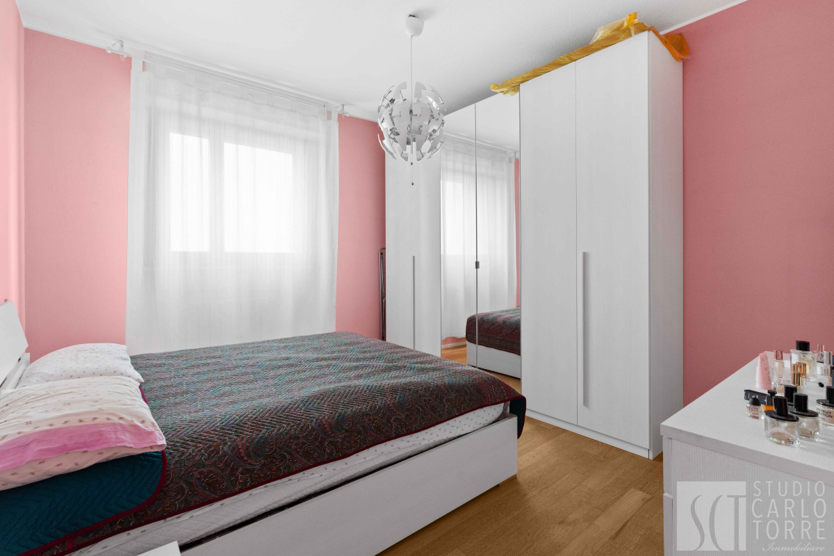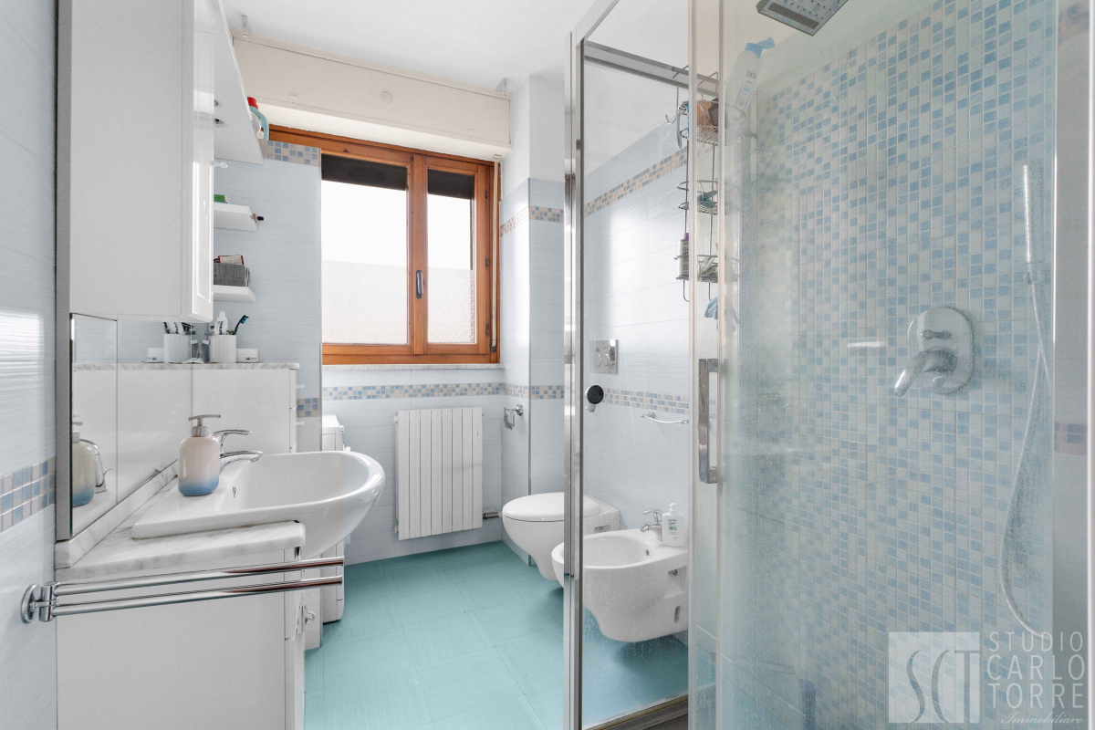 Le due camere da letto sono molto spaziose e offrono tranquillità grazie al piano alto. Il bagno finestrato è elegante ed equipaggiato con doccia moderna.