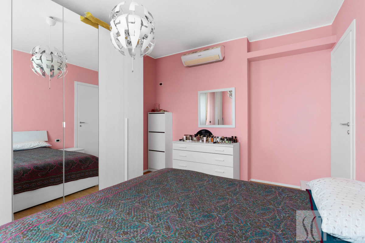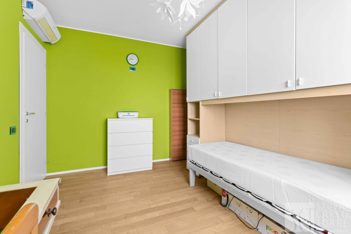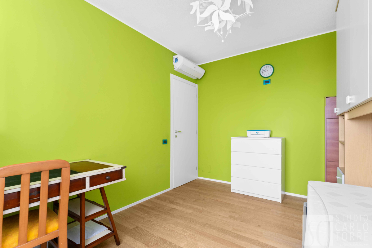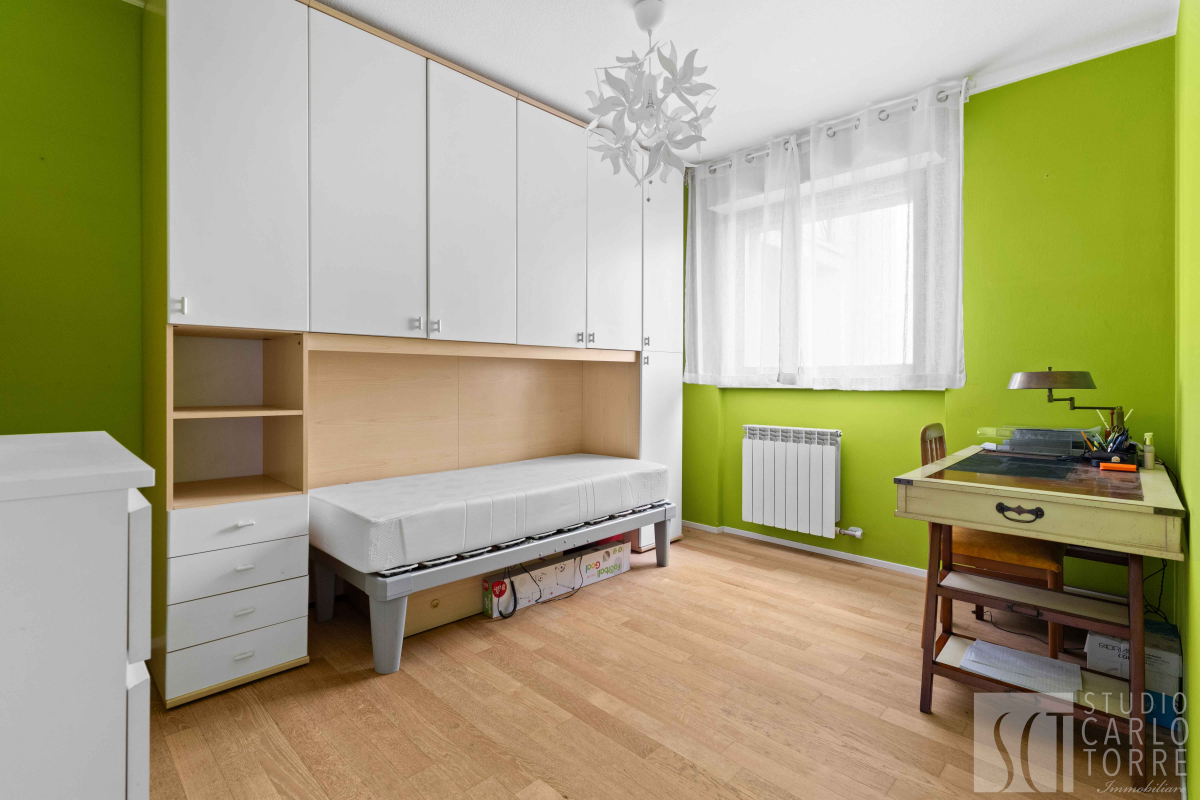 Le due camere da letto sono molto spaziose e offrono tranquillità grazie al piano alto. Il bagno finestrato è elegante ed equipaggiato con doccia moderna.