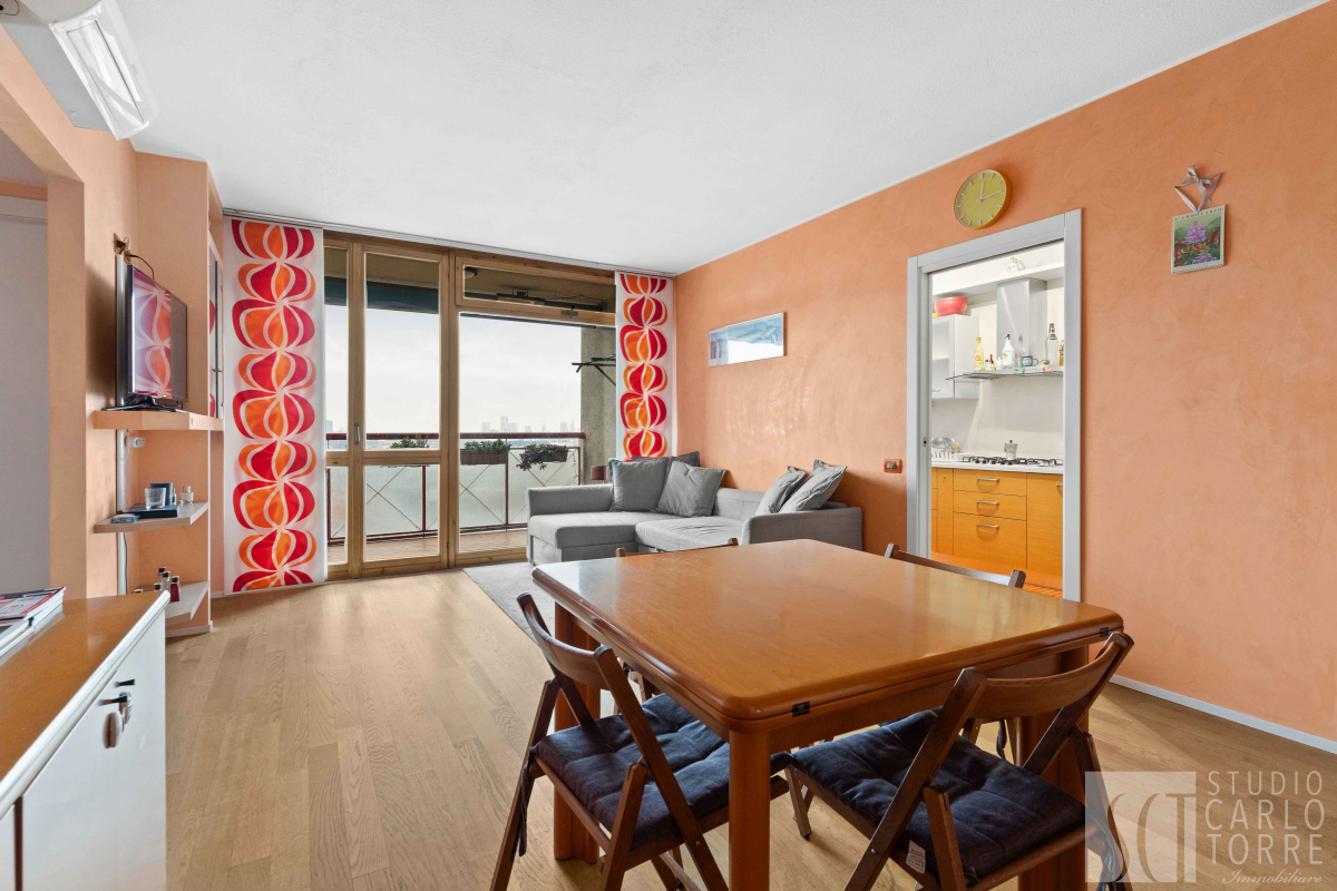 L'appartamento è composto da un luminoso soggiorno dotato di accesso ad un accogliente terrazzino, perfetto per godersi momenti di relax all'aperto. La cucina separata è fornita di balcone privato, offrendo ulteriore spazio all'aperto.