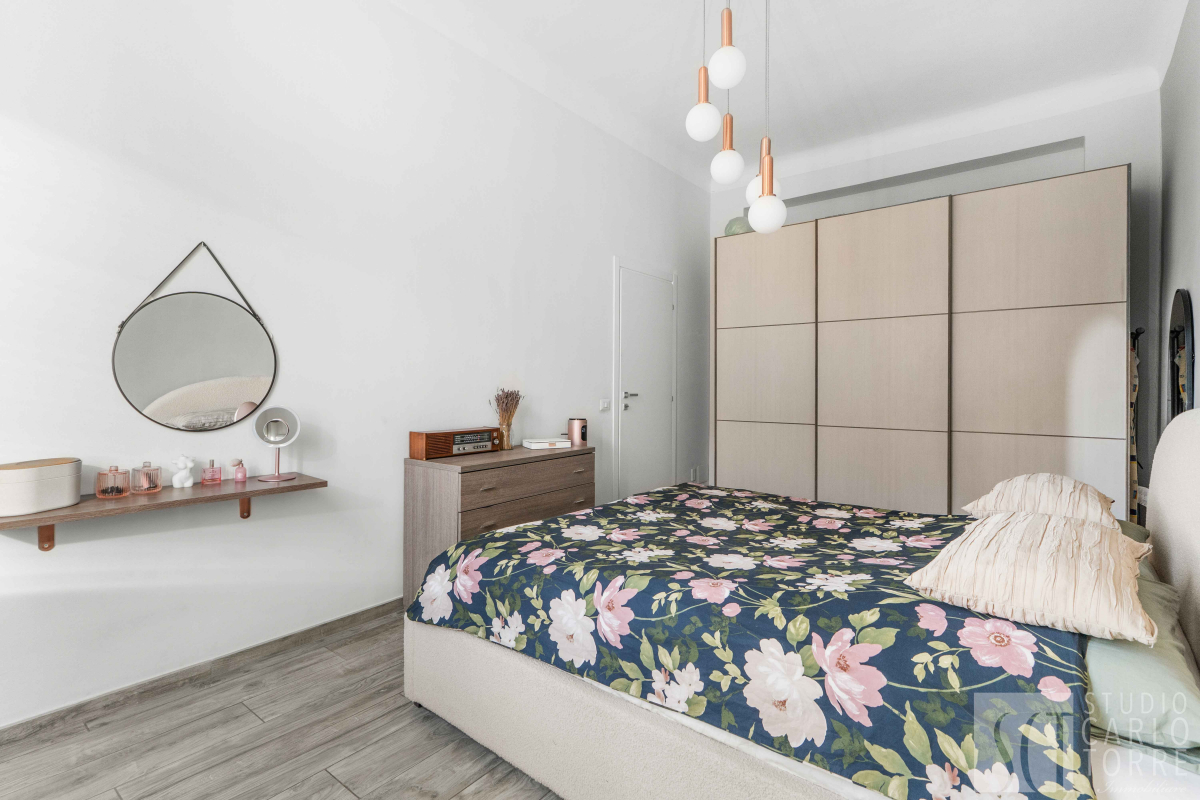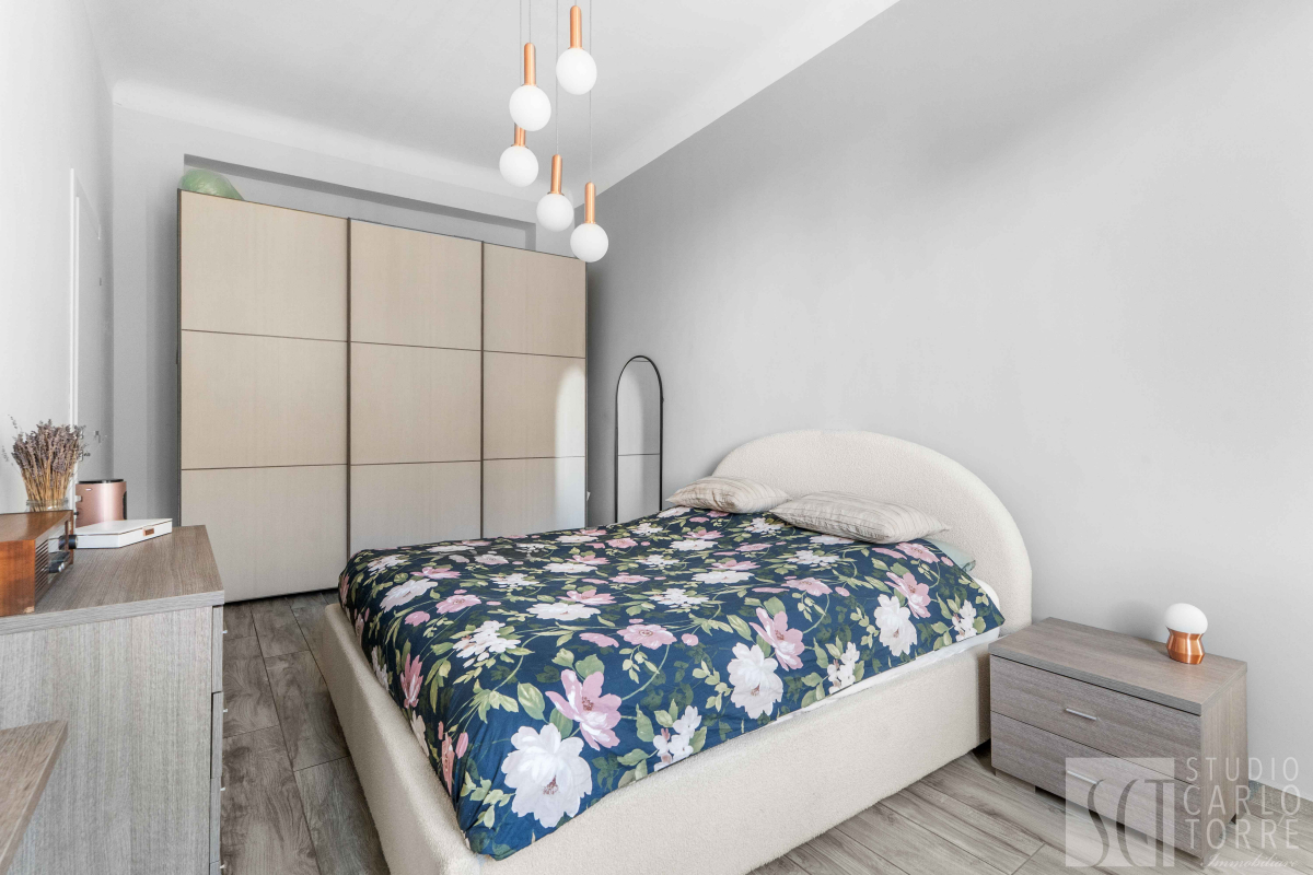 La camera matrimoniale è spaziosa e accogliente, mentre la cameretta è anch'essa dotata di un balcone privato. Il bagno finestrato presenta eleganti finiture ed è completo di doccia.