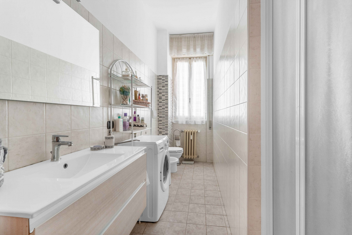 Il bagno finestrato è completo, fornito di doccia, garantendo comfort e praticità quotidiana.