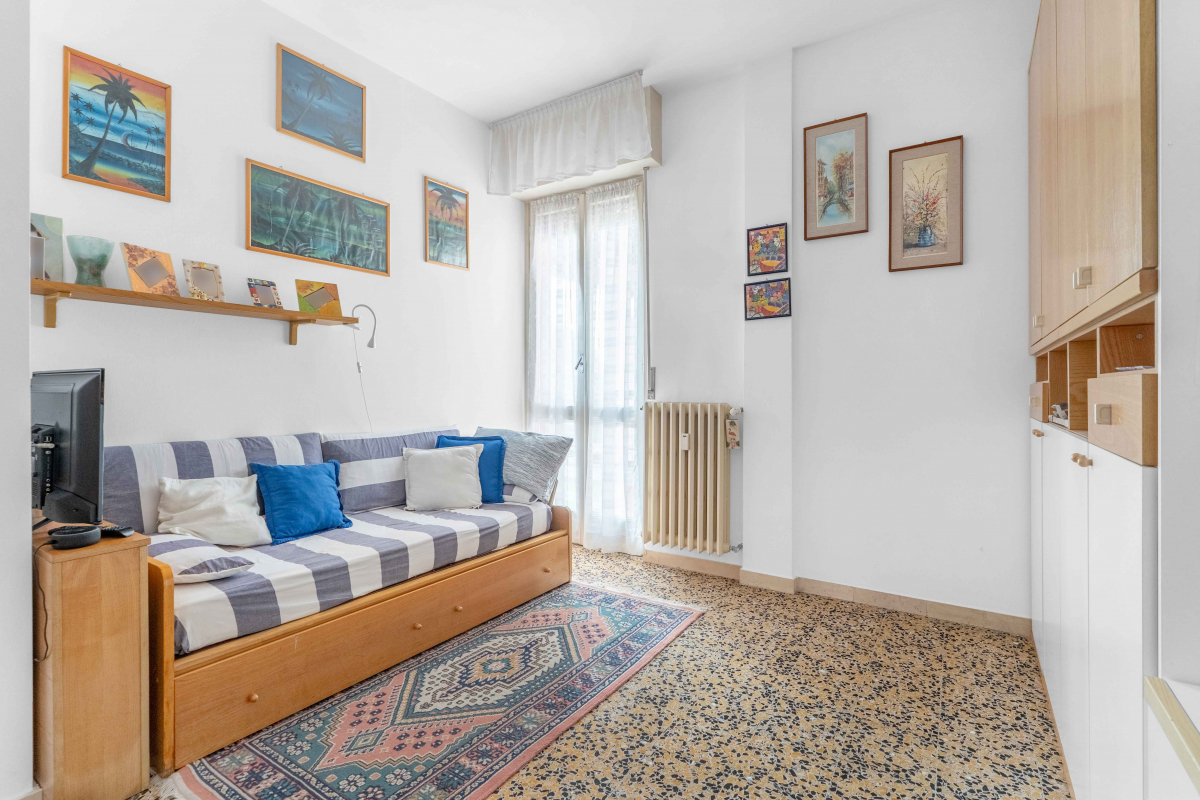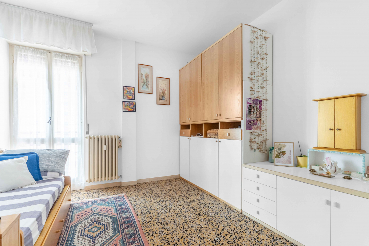 La camera matrimoniale non solo offre ampio spazio ma dispone anche di un secondo balcone. La cameretta rappresenta l'ideale soluzione per i più giovani della famiglia o come studio personale; anch’essa beneficia dell'accesso a un proprio balcone.