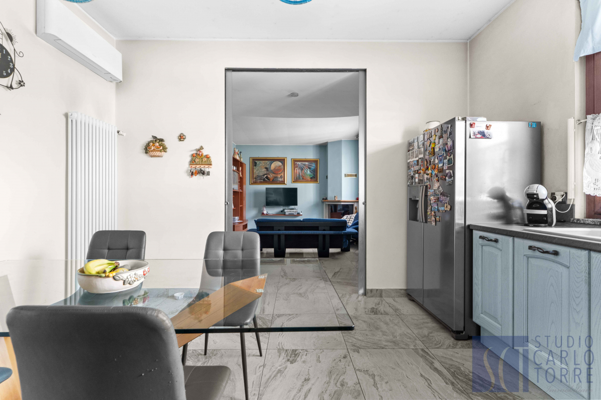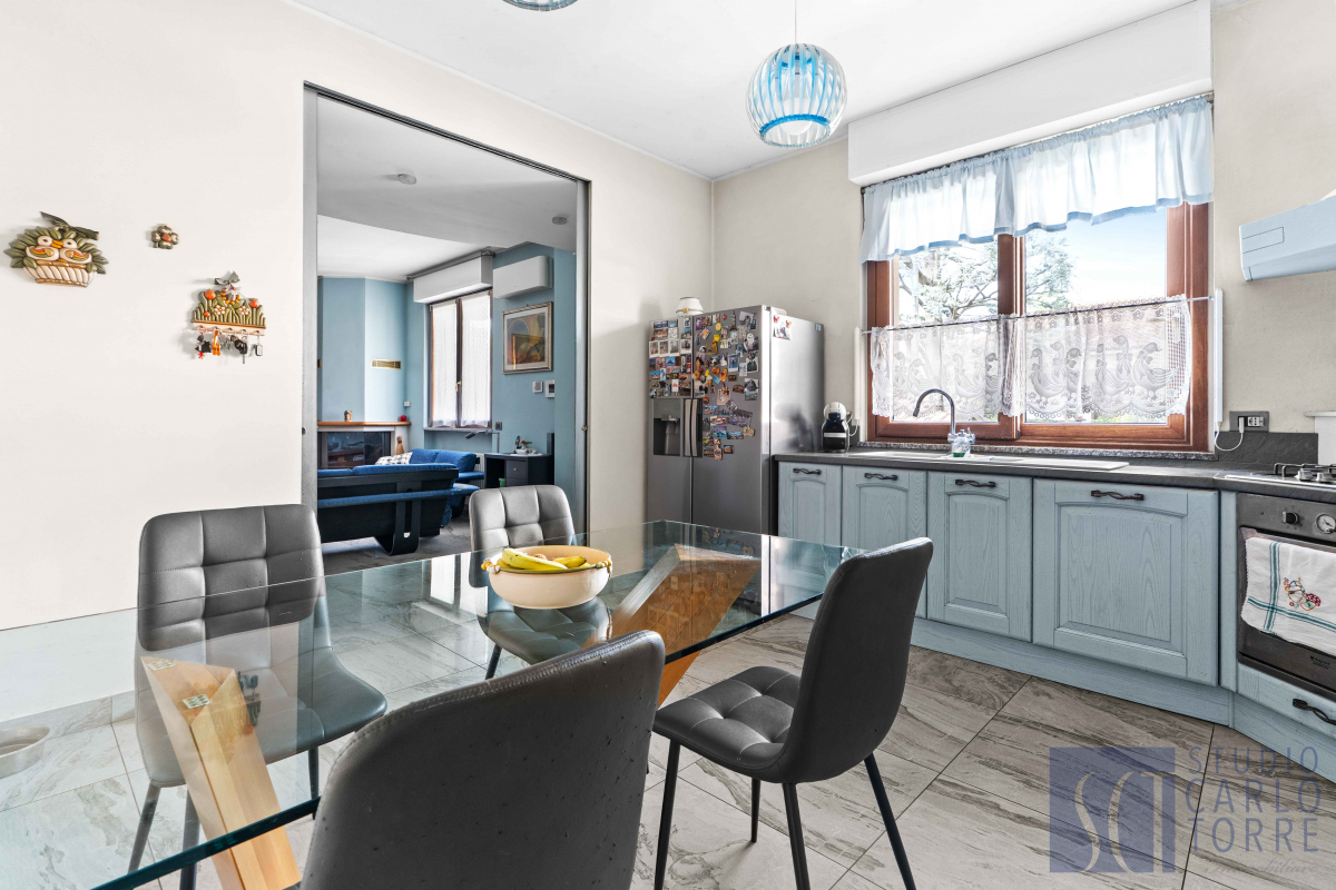 Al piano terra troverete un ampio e luminoso soggiorno grazie alle ampie finestre. La cucina separata permette una gestione ottimale degli spazi durante i pasti in famiglia. Sono presenti due camere matrimoniali confortevoli, ideali per il riposo notturno, oltre a un bagno ben arredato e finestrato.